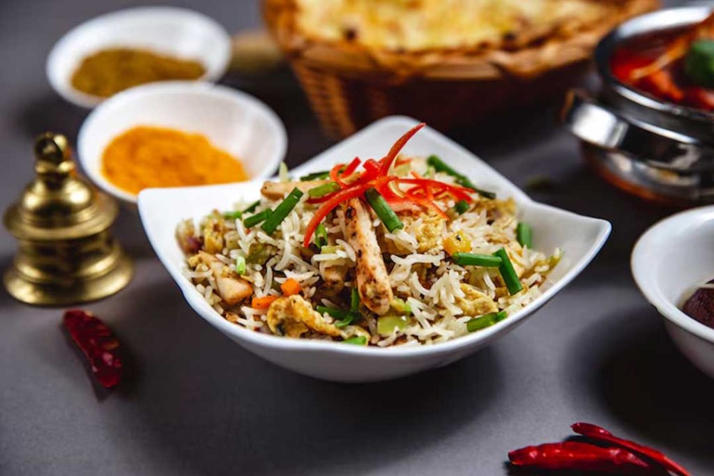 This slow process ensures that the rice absorbs the aroma of spices and meat without becoming oily or overcooked. The kitchen team at Anmol Hyderabadi Restaurant monitors temperature and timing carefully, which is especially important when preparing larger batches for catering.